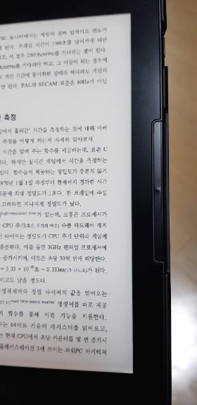 화면 확대 를 할 때에는 확실히 안 좋더라구요.. 다른 전자책 리더기는 사용을 안해봐서 모르겠지만 어릴 때 사용 하던 전자 사전 느낌이라고 해야 할까요? 전 요고 빼고는 사용 하면서 크게 불편함은 없었습니다.