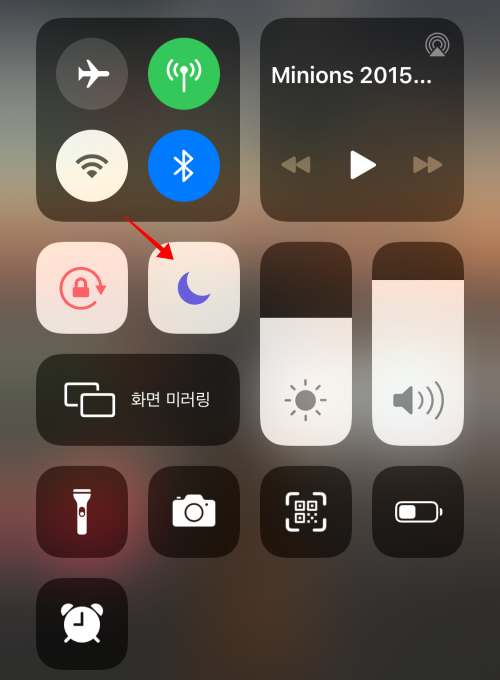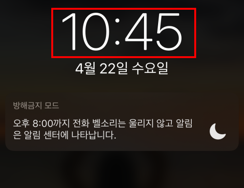 10시 45분이 되니 자동으로 아이폰 방해금지 모드가 설정 된 걸 볼 수 있습니다.