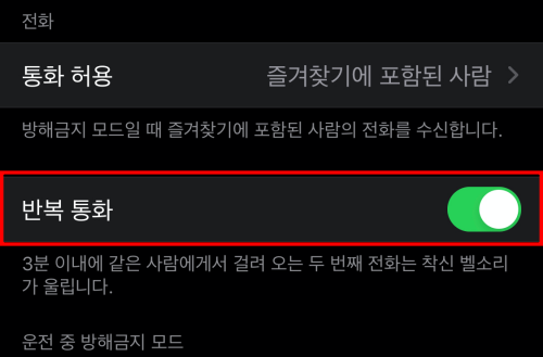 반복통화 기능을 사용하면 통화 허용을 '없음’으로 지정하였어도