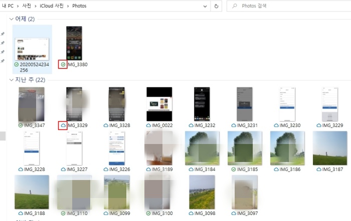 사진이 바로 폴더에 저장되는 방식이 아니기 때문에 데스크탑 용량을 걱정할 필요는 따로 없습니다. 사진을 열게 되면 아이클라우드에서 다운받게 되니 참고 해주세요. 아직 pc에 다운받지 않은 상태의 경우 iCloud의 구름 모양이 아이콘에 보이며, 사진을 실행하여 다운받게 되면 체크아이콘으로 변하게 됩니다. 동기화를하게 되면 아이폰에 사진이 추가 될 때마다 바로바로 해당 폴더에서 볼 수 있게 됩니다. iCloud를 이용하지 않으시면 이용요금 조금 사용하더라도 백업역할도 하기 때문에 이용하는걸 저는 추천드려요.