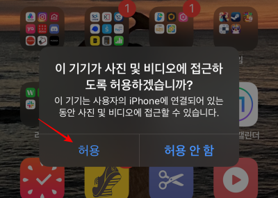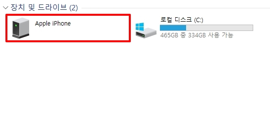 USB-라이트닝케이블만 있으면 쉽게 옮길 수 있습니다. 방식은 아이폰과 사진을 옮길 컴퓨터와 케이블로 연결해 줍니다. 연결을 하게 되면 아이폰에 이 기기가 사진 및 비디오에 접근하도록 허용하겠습니까? 이 기기는 사용자의 iPhone에 연결되어 있는 동안 사진 및 비디오에 접근할 수 있습니다. 라는 문구를 볼 수 있습니다. 버튼을 눌러 허용해 줍니다. 허용하고 난 후 장치 및 드라이브를 보게 되면 Apple iPhone 드라이브가 생긴 걸 볼 수 있습니다.