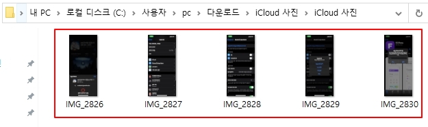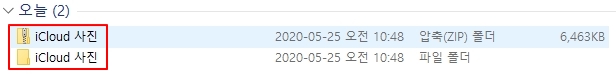 iCloud에서 사진을 다운로드 할 때에 사진이 여러장일 경우에는 이렇게 압축(ZIP)파일로 다운로드를 하게 됩니다. 압축을 풀어서 열어보면 좀 전에 받은 사진이 있는걸 볼 수 있습니다.