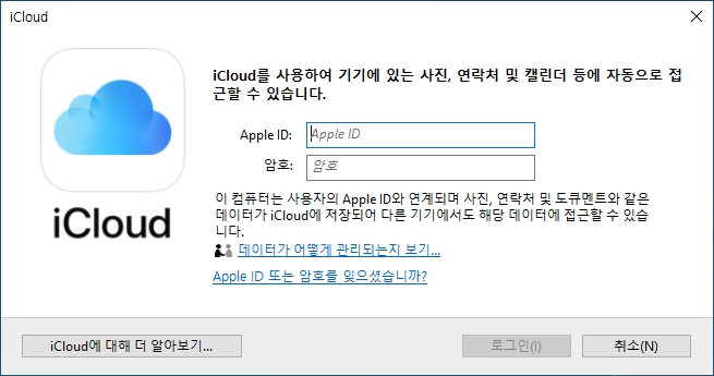 또는 Window용 icloud를 받아서 사진을 동기화 하는 방법도 있습니다. iCloud에 연동되어 있는사진이 데스크탑 사진 폴더와 연동이 됩니다.