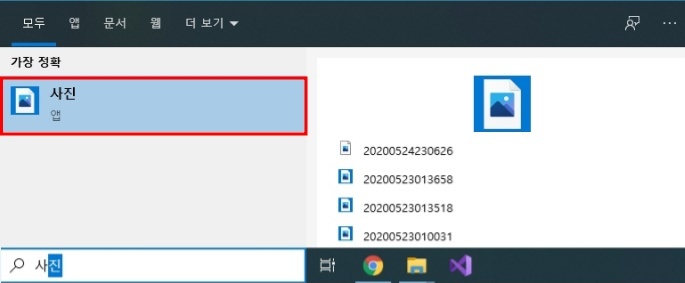만약 해당알림창이 나오지 않을 경우 윈도우키를 눌러 사진을 검색하여서 사진앱을 실행시키거나 메뉴에서 찾아주셔서 사진앱을 실행해주셔도 됩니다.