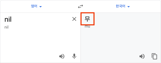즉 '없는 것에 대해서 어떻게 표현을 할 것이냐.' 라는 개념입니다. swift에서는 nil이라는 값으로 없는 값을 표현하고 있으며, 값이 없는 경우를 나타내야 할 때에 optional을 사용하면 됩니다. 구글 번역기에서도 nil을 검색하면 '무'라는 의미로 나타납니다.