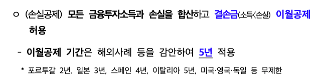 또한 금융투자 소득과 손실을 합산하는 결손금 이월공제 기간이 기존 3년에서 5년으로 확대가 되었습니다.