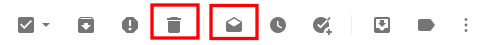 혹은 메일을 선택하게 되면 상태바로 변경이 됩니다. 빨간색 박스 첫 번째가 삭제, 두 번째가 읽음, 읽지 않음 처리 하는 아이콘입니다. 해당 아이콘을 이용해서 읽지 않은 메일을 모두 삭제하거나, 위에서 처럼 읽음 처리를 할 수 있습니다.