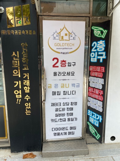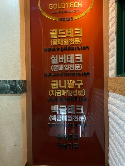 문을 열게 되면 골드 테크 금, 은, 치금, 백금 매입 전문이라고 촥! 나와있습니다.