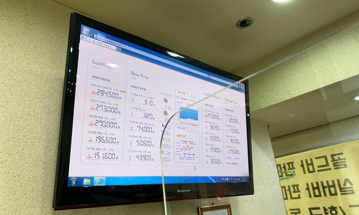 가게는 그렇게 크지 않은데요. 거래가 너무 빨리 진행돼서 사진을 가게 사진을 제대로 찍지 못했습니다. 정말 쿨거래였습니다. 1분도 안돼서 끝이 났거든요. 종로 치금 매입 전문 골드테크에 들어오게 되면 벽면에 금 시세가 표시되어있습니다.