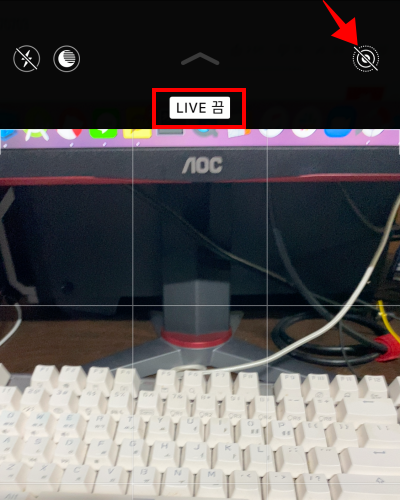 먼저 아이폰 라이브포토가 활성화되어있는 상태입니다. 카메라 앱에서 촬영을 할 때에 상단에 LIVE표시가 되어있습니다. 켜고 끄는 버튼은 오른쪽 상단에 버튼이 있습니다. 이제 한 번 아이폰 라이브포토를 꺼보겠습니다.