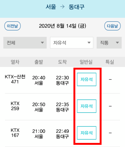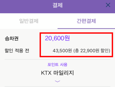 제일 중요한 건 당연히 KTX 할인율입니다. KTX 일반석의 경우 시간에 따라서 다르며 최대 40%까지 할인을 받을 수 있습니다. 저는 최대한 할인을 많이 받기 위해서 시간보다 할인비율을 우선으로 예매했었습니다.
