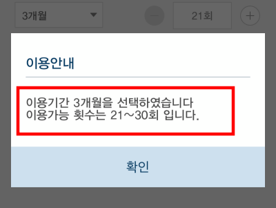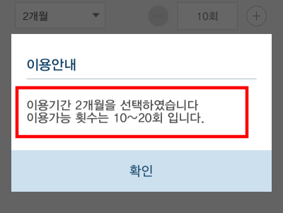 이용 가능 횟수는 2개월 3개월이 있습니다. 2개월의 경우 10~20회까지 이용할 수 있습니다. 횟수에 따라서 가격이 올라가게 됩니다.