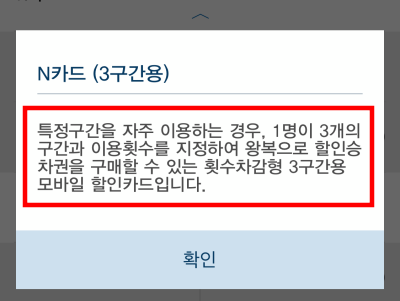 3구간용 N카드입니다. 1명이 3개의 이용구간 지정할 수 있습니다. 여러 곳을 다니거나, 여행 계획이 있으시다면 이용해 보면 좋을 듯합니다.