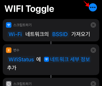WIFI Toggle 단축어 설정에서 한 번 더 설정을 눌러줍니다.