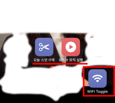 이미 아이폰 배경화면에 3개의 단축어를 사용하고 있습니다. WIFI Toggle 아이폰 단축어가 생긴 걸 볼 수 있습니다. 클릭하여 와이파이를 꺼봅시다.