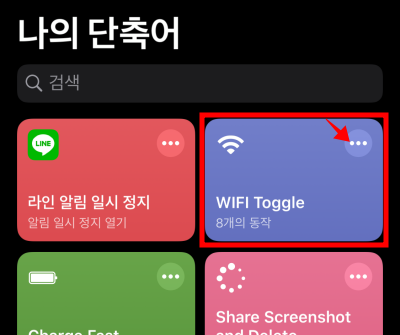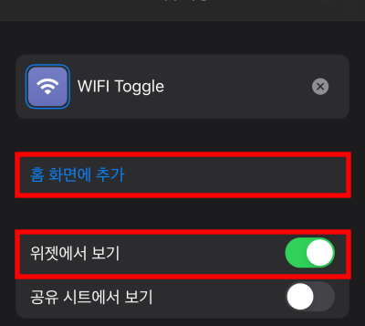 받은 아이폰 와이파이 토글 단축어를 나의 단축어에서 확인을 했으면 간편하게 사용을 하기 위해서 홈 화면에 설정을 해줍시다.