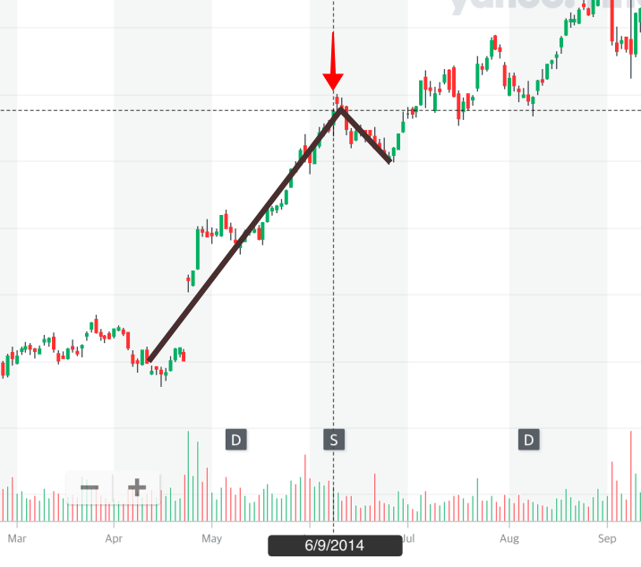 애플의 경우 총 상장이후 4번의 주식분할(액면분할)이 있었습니다. 테슬라는 액면분할이 처음이라 자료가 없기 때문에 애플을 참고했습니다. 1987년, 2000년, 2005년, 2014년, 그리고 2020년 올해 이렇게 분할을 하게 되었습니다. 가장 최근에 한 2014년 차트를 보게 되면 애플 주식분할 소식이후 급등하였는데요. 단기간적으로는 살짝 빠지는 모습을 보였습니다. 이전 3번의 주신분할도 이후 빠지는 흐름을 보여줬습니다.
