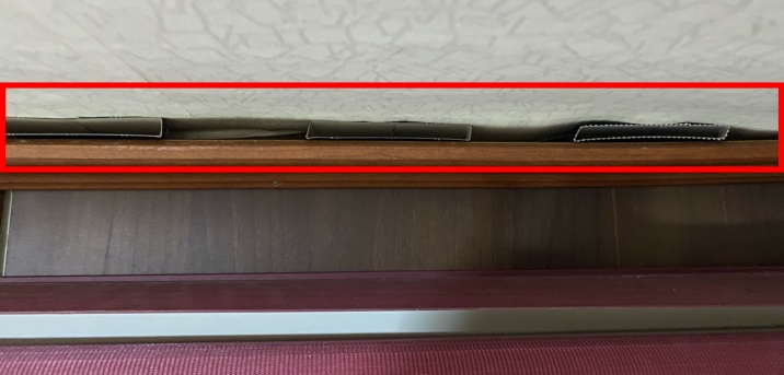 그러고 4개월이 흐르고 오늘 세스코 기사님의 정기 방문이 있었습니다. 결과적으로는 무려... 7마리 정도가 잡혔습니다. 이게 잡히지 않았다면 눈으로 볼 수 도 있었는데 다행입니다. 기사님은 모두 외부 바퀴벌레라고 하시네요. 바퀴벌레가 잡힌 곳은 주방 쪽과 건물 외부와 연결된 방(방을 확장해서 좀 특이합니다)의 틈새들이었습니다. 여기는 천장과 벽의 틈새입니다. 이곳에 틈새로 바퀴벌레가 돌아다닌 거 같다고 했습니다. 그래서 추가로 많이 설치를 했네요.
