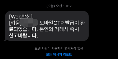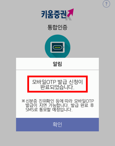 저는 하루지나서 키움증권 모바일 OTP 발급완료 문자를 받았습니다.