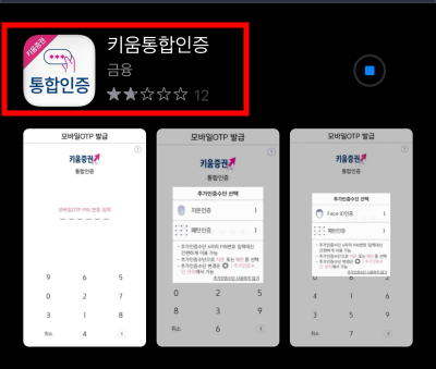 앱스토어, 플레이스토어로 이동하여서 키움통합인증을 다운로드합니다.