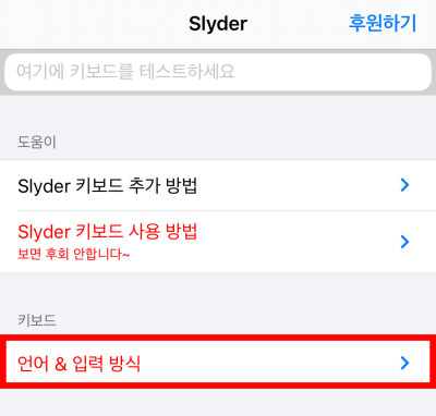 아이폰 오타를줄이는 방법으로 다른 방법은 키보드 어플을 사용하는 것입니다. 바로 Slyder 슬라이더 키보드인데요. 먼저 앱스토어에서 Slyder를 다운받습니다. Slyder 슬라이더 키보드의 경우 키보드 높이 조절로 아이폰 오타를 줄여주고 추가적으로 아이폰 기본 키보드에 없는 유용한 기능들이 많이 있습니다. 먼저 아이폰 기본 키보드에서 슬라이더 키보드로 변경을 해줍시다.