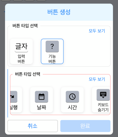 기능버튼입니다. 커서이동, 실행취소 등 여러가지 기능들이 있습니다. 가장 편한 기능은 붙여넣기 & 클립보드 기능입니다. 끌어서 복사후 바로 버튼으로 입력이 가능해서 너무 편하네요.