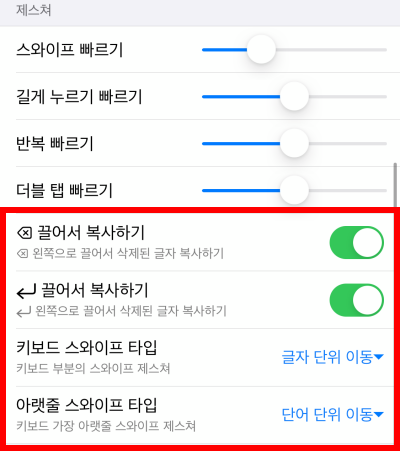 아이폰 오타가 잘 나지 않는 분들도 이런 기능들이라면 충분히 설치하셔서 사용해보시면 좋을거 같습니다. 편한기능이 너무 많네요. 오타 방지는 덤입니다.