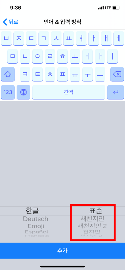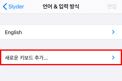 새로운 키보드 추가를 눌러 한글 키보드를 추가합니다.