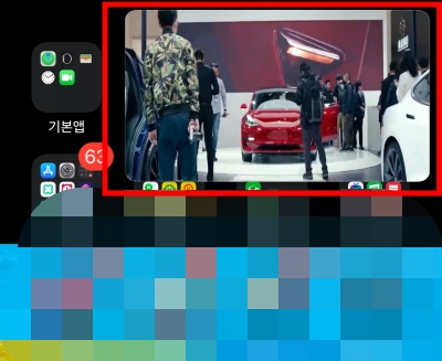 짜잔~ 이건 홈 화면인데요. 유튜브 영상이 PIP 모드로 잘 유지되는 걸 볼 수 있습니다. 이제 영상을 보면서 카톡도 하고 다른 웹서핑도 하고 마음 대로 할 수 있게되었습니다.