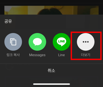 공유버튼을 누르게 되면 하단에 메뉴바가 노출됩니다. 더보기 버튼을 눌러주세요.