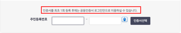 공동인증서 로그인이 가능하셨다면 주민번호를 동해서 등록을 해주어야 합니다.