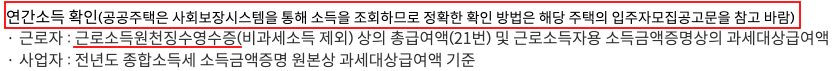 이걸 보면 현재 체감 월급과 많이 차이가 나는걸 볼 수 있습니다. 저도 처음 확인해봤는데 살짝의 현타가 오네요. 단순 연봉만 생각 하다가는 소득 기준이 어긋날 수 있을듯합니다. 먼저 꼭 확인 하시고 청약 신청하세요.