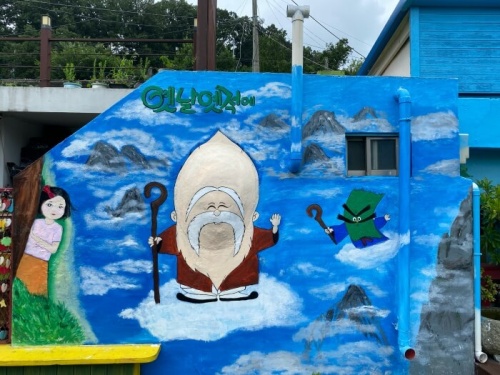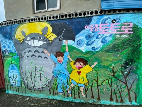 자만벽화마을입구입니다. 뭐 거창하게 되어있지는 않아요. 다른 벽화마을처럼 집에 벽화 그림들이 그려져있습니다.