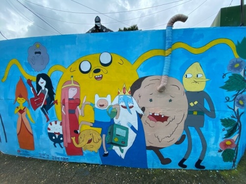 각각의 집들의 벽면에 다양한 그림들이 그려져있네요.