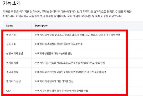 카카오 비전 API에서는 다양한 기능을 제공하고 있으니 필요한 기능을 가져다 쓸 수 있을듯 하면 한번 사용해보세요.