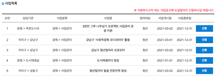 각각의 사업별로 내용을 볼 수 있으니 사업목록을 잘 살펴보시길 바랍니다.