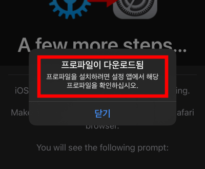 프로파일을 다운로드 하려고 합니다. 이 동작을 허용하겠습니까? 허용해주세요. 그럼 이렇게 iOS 14 베타 프로파일이 다운로드 됩니다.