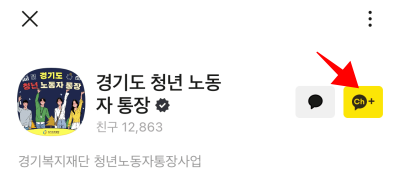 먼저 카카오톡 채널 검색에서 경기도 청년 노동자 통장을 검색한 후 결과에 채널 추가 표시를 눌러줍니다.