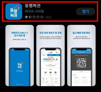 저는 아이폰 사용자라 앱스토어에서 동행복권 앱을 다운로드 하였습니다.