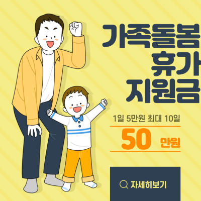 가족돌봄휴가의 경우 일반휴가와 다르게 무급입니다. 따라서 경제적 부담완화를 위해서 가족돌봄휴가 지원금을 1일 5만원으로 책정하여 최대 10일간 지원합니다. 지원금을 통해서 경제적인 부담을 줄여주고 무급인 휴가를 장려하는 정책입니다.