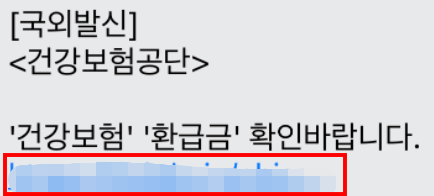 하지만 환급금이라는 달콤한 말에 이미 사기 문자를 보내는 스미싱행위가 벌써 성행하고 있습니다. 문자로 오는건 대부분 스팸 스미싱이기 때문에 무조건 링크를 누르시면 안됩니다. 건강보험료 환급금 신청, 조회 등 문자가 온다면 바로 지우시길 바랍니다.