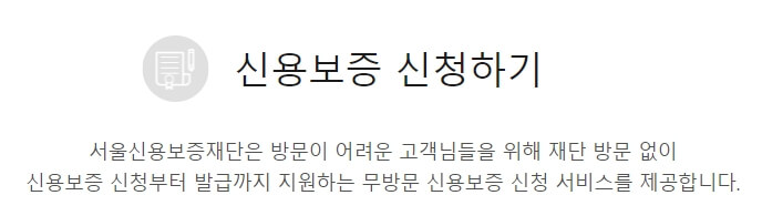 서울신용보증재단 무방문 보증신청하기 - 신용보증 신청을 눌러서 비대면으로 바로 신청이 가능합니다.