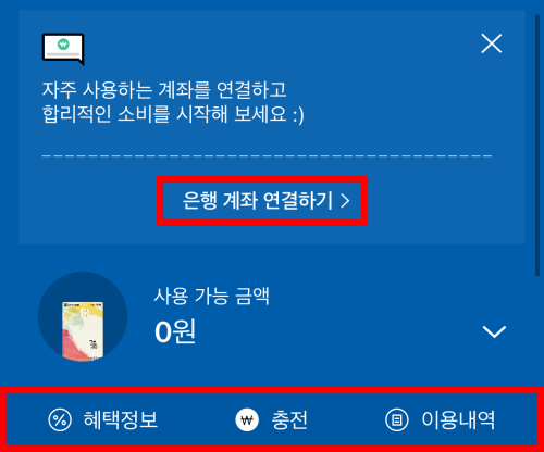 은행계좌 연결하기를 눌러서 경기지역화폐 충전계좌를 등록해주세요.