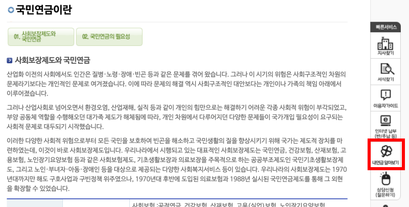 오른쪽 사이드바에 내 연금 알아보기가 있습니다.