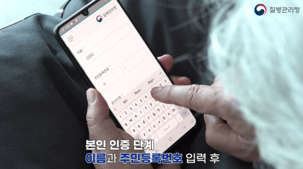 백신 접종을 할 본인 인증단계를 위해 이름과 주민등록번호를 입력해주세요.