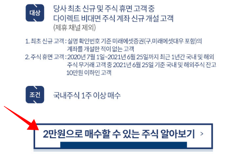 현재 다양한 계좌개설 이벤트를 진행하고 있습니다. 국내주식의 경우 1주만 매수해도 투자지원금 명목으로 2만원을 지급한다고합니다. 요즘 지원금 지급 이벤트가 많이 보이는 추세입니다.