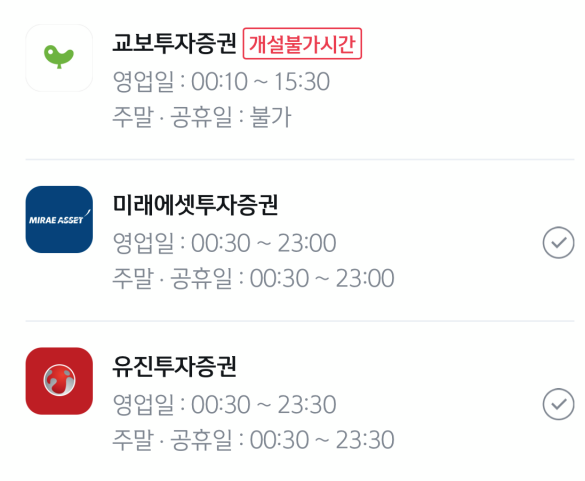 미래에셋증권 계좌개설 뿐만 아니라 다양한 증권사 계좌 개설이 가능합니다. 공모주 청약시에는 주관사가 달라지기 때문에 다양한 계좌가 필요하게 됩니다. 해당기능을 통해서 계좌개설 20일 제한도 피하고 편하게 개설 해보시길 바랍니다.