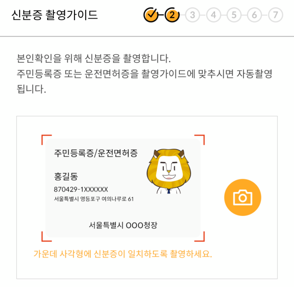 인증이 완료되면 신분증 촬영으로 추가 인증을 진행합니다.