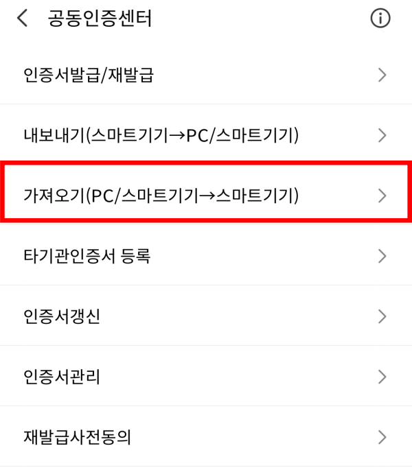 가져오기 (PC / 스마트기기 -> 스마트기기) 메뉴를 눌러주세요.