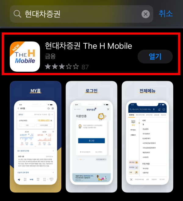 현대차증권 애플리케이션 The H Mobile